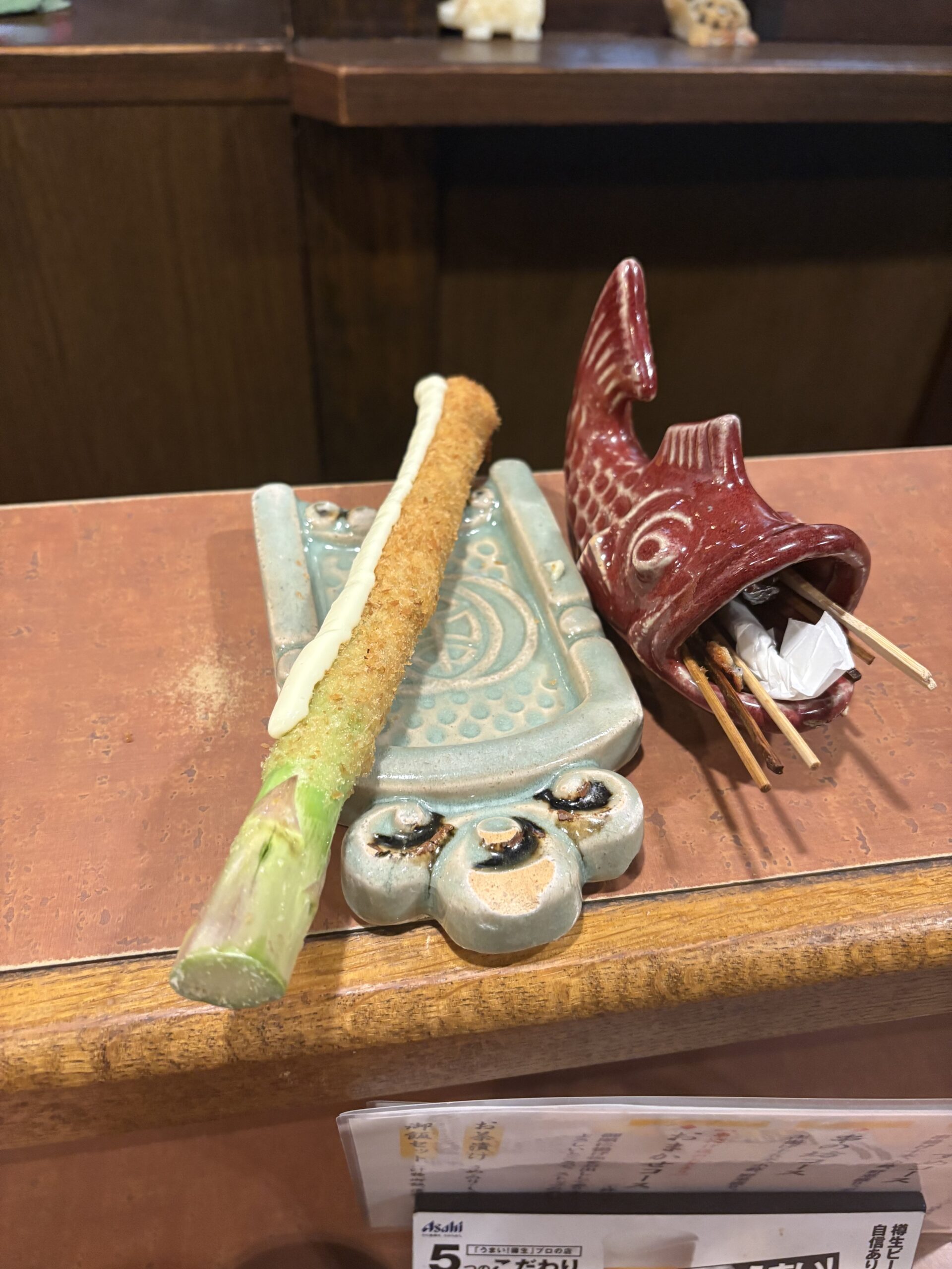 一本ずつ丁寧に揚げられた串は、衣が驚くほど軽く、油の重さをほとんど感じません。今回いただいたアスパラは、外はさくっと、中はみずみずしく甘みが広がり、素材の良さがそのまま伝わってきます。