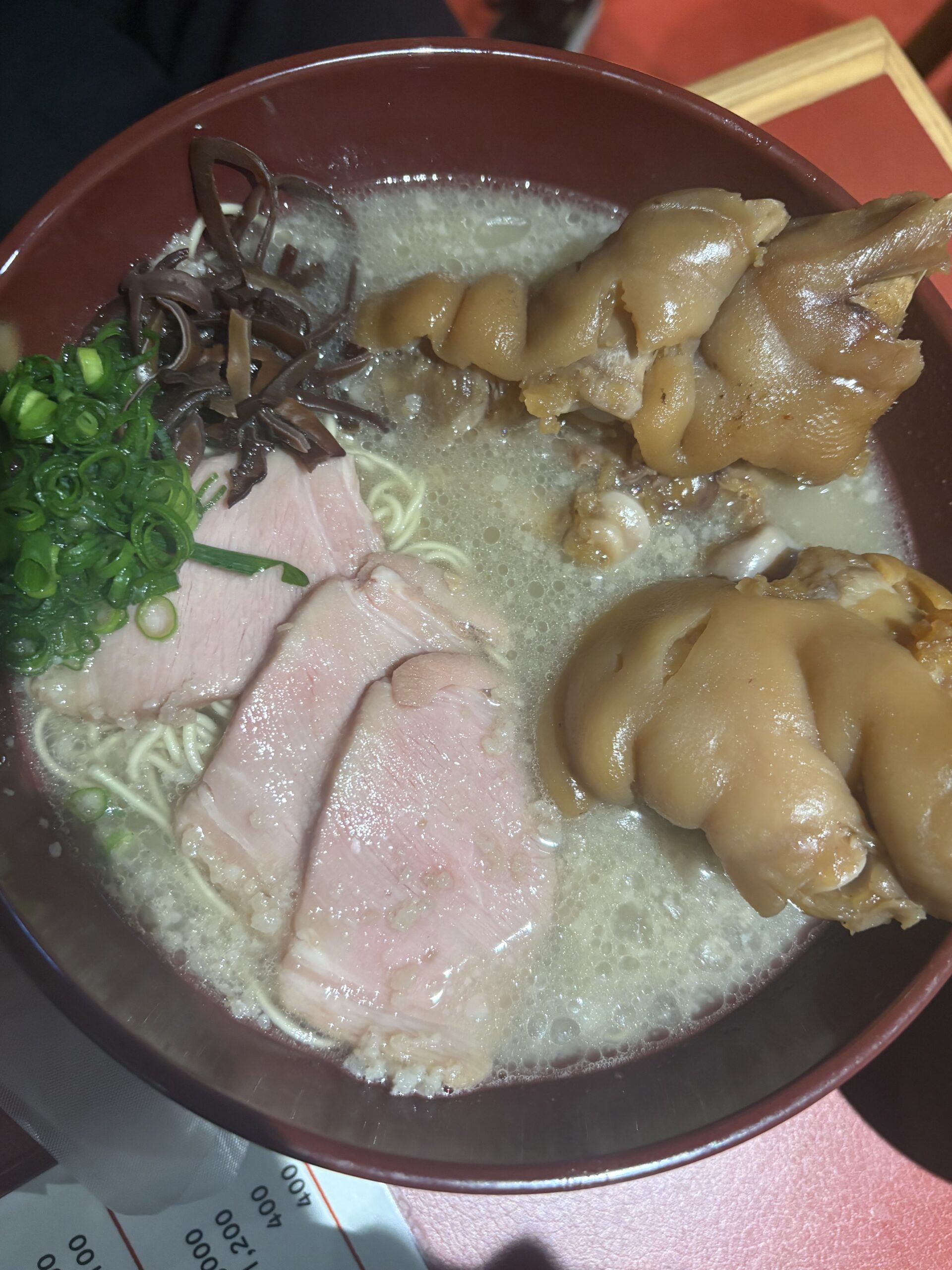 細めの麺がスープをしっかり持ち上げ、ネギやきくらげの食感が良いアクセントに。全体として完成度が高く、豚骨好きにはしっかり刺さる一杯です。