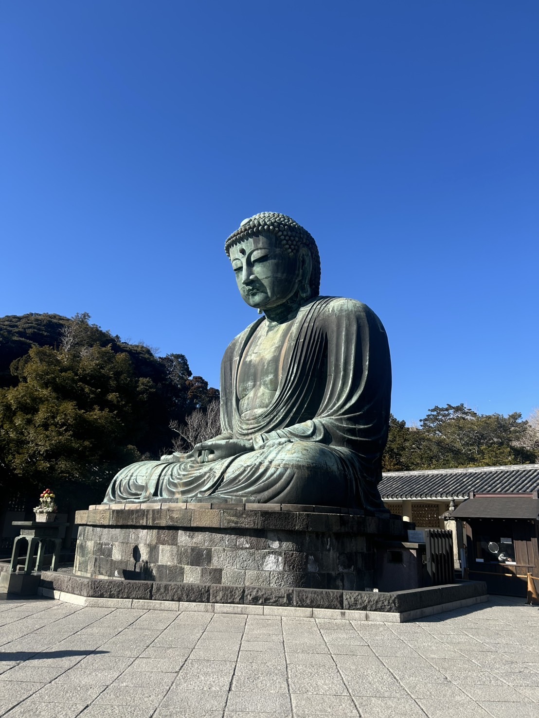 鎌倉の大仏は、近くで見ると想像以上に静かで落ち着いた存在感があります。